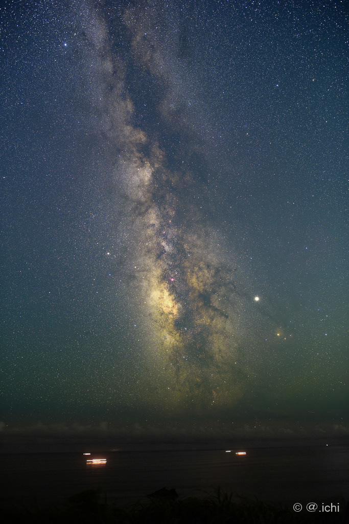 今回の絵は、ずっと心の中にしまってあった企画のひとつ、「海から立ち上がる天の川」に挑戦してみたカットです