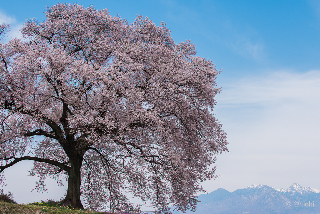 立派な枝ぶりの満開の桜と八ヶ岳連峰とのコラボ、この構図に憧れてこの地に訪れたのは2016年の春でした